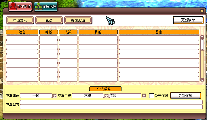 提供玩家申请加入在线队伍与邀请在线玩家组队。