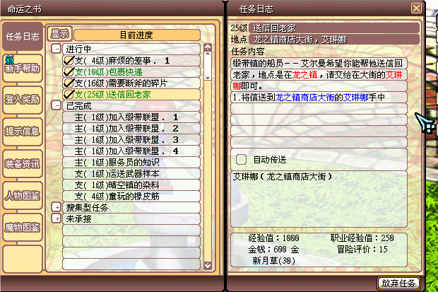 显示玩家目前正在进行的任务,此视窗只有在接洽任务后才会显示。