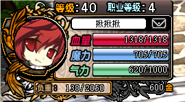 显示玩家当前角色的头像、等级、职业等级、角色昵称、血条数值、魔力值、气力值、负重值(目前负重/最大负重量)、持有金币数量、好友邮件提示等资讯。