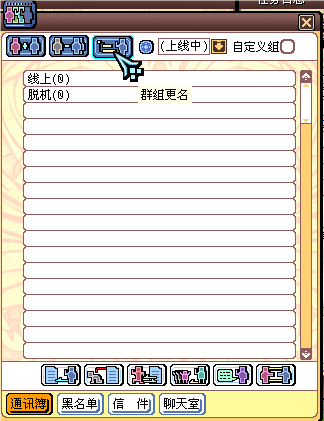 可以开启好友视窗,在这里可确认好友上线状态、设定黑名单、信件收发与进入聊天室。