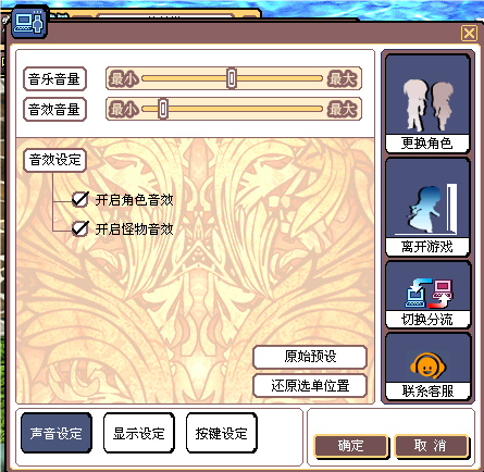 【音效音量】调整战斗音效以及打及效果等游戏音效音量。