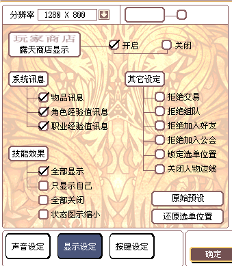 【其他设定】拒绝交易、拒绝组队、拒绝加入好友、拒绝加入工会、锁定选单位置、关闭人物边线等细部设定可以自由关闭或开启。