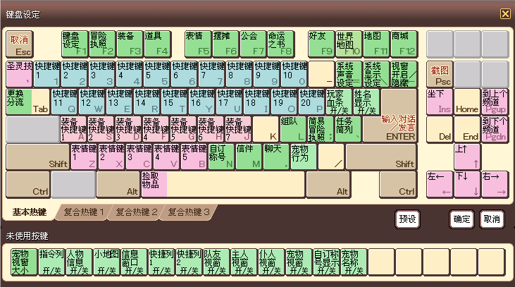 可查看游戏内所有按键的对应键盘按键,或可自由更换键盘按键。